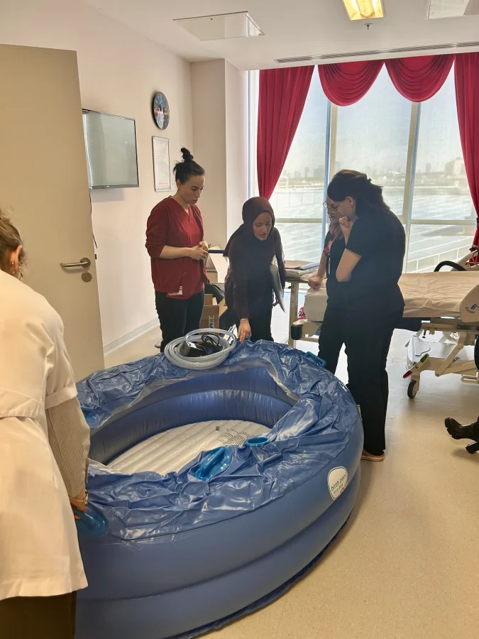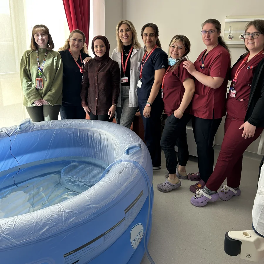 Ankara Bilkent Şehir Hastanesi Kadın Doğum Hastanesi Başhekimi Prof. Dr. Özlem Moraloğlu Tekin’in öncülüğünde gerçekleştirilen travay ve suda doğum uygulamasında, kendisinin engin tecrübelerinden faydalandık.