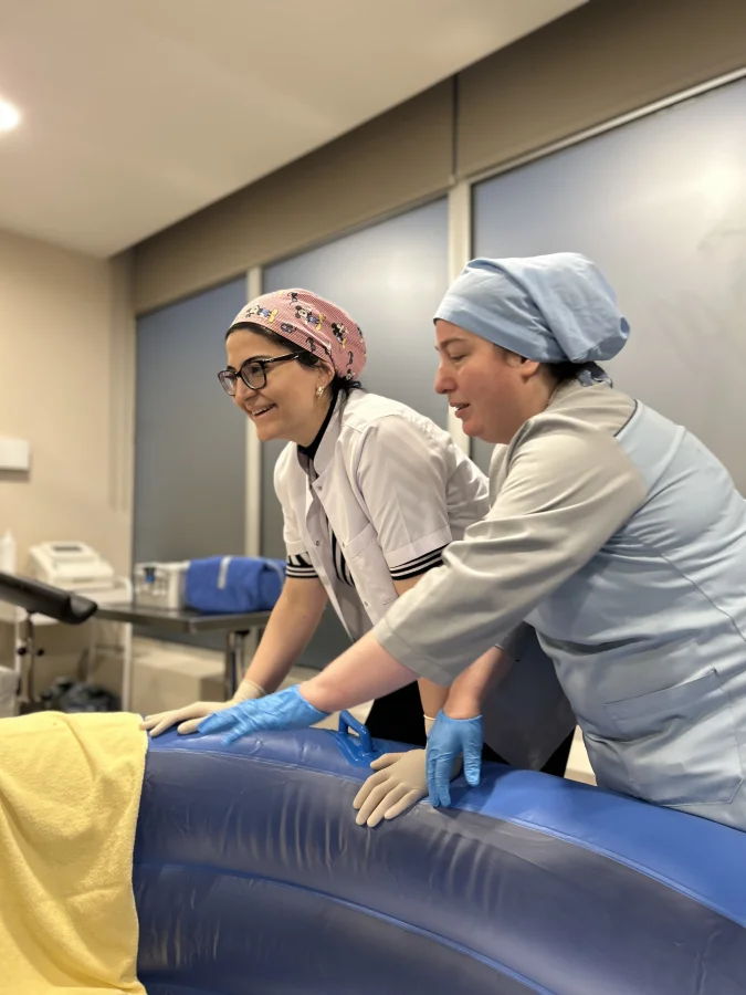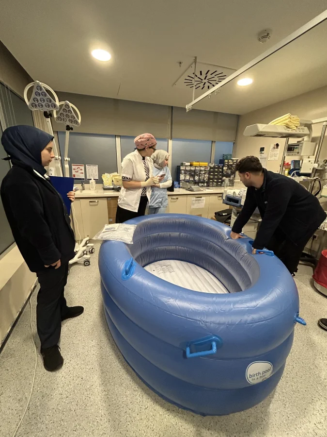 Medipol Çamlıca Hastanesi’nde kadın doğum doktorlarının, kadın doğum hemşirelerinin, doğumhane sorumlu ebesinin, enfeksiyon biriminin, biyomedikal ekibinin ve teknik servis ekibinin katıldığı “Suda Doğum Havuzu Kullanıcı Eğitimi” gerçekleşti.